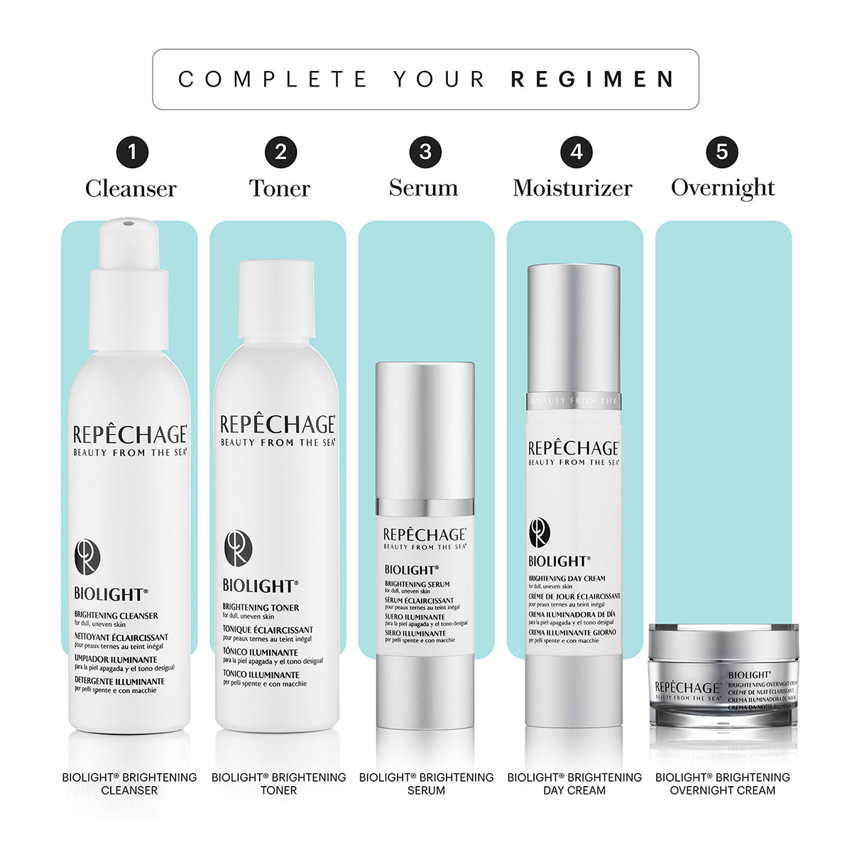 The Repechage Biolight™ collection takes a multi-dimensional approach to corrective skin care through skin brightening and even toning. In an independent study, 92% of people who used our Biolight Collection saw a decrease in the appearance of skin discolorations, pigmentary spots and saw a more evened-out skin tone, while 75% saw improvement in skin firmness and elasticity (based on consumer self-assessments).