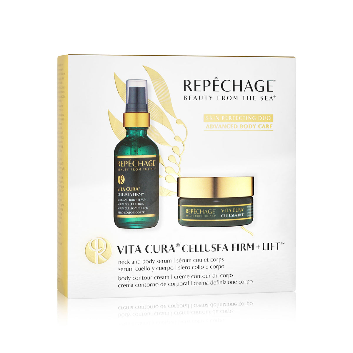 This power duo brings our most advanced skin care ingredients to body care for targeted visible results. Features our exclusive, sustainably-harvested Seaweed extracts and clinically tested Kappaphycus Alvarezii Extract and Caesalpinia Spinosa Fruit Extract for a visibly lifting and smoothing effect. Peptides, Caffeine, Coenzyme A and pure plant botanicals help promote the appearance of firm, glowing skin.