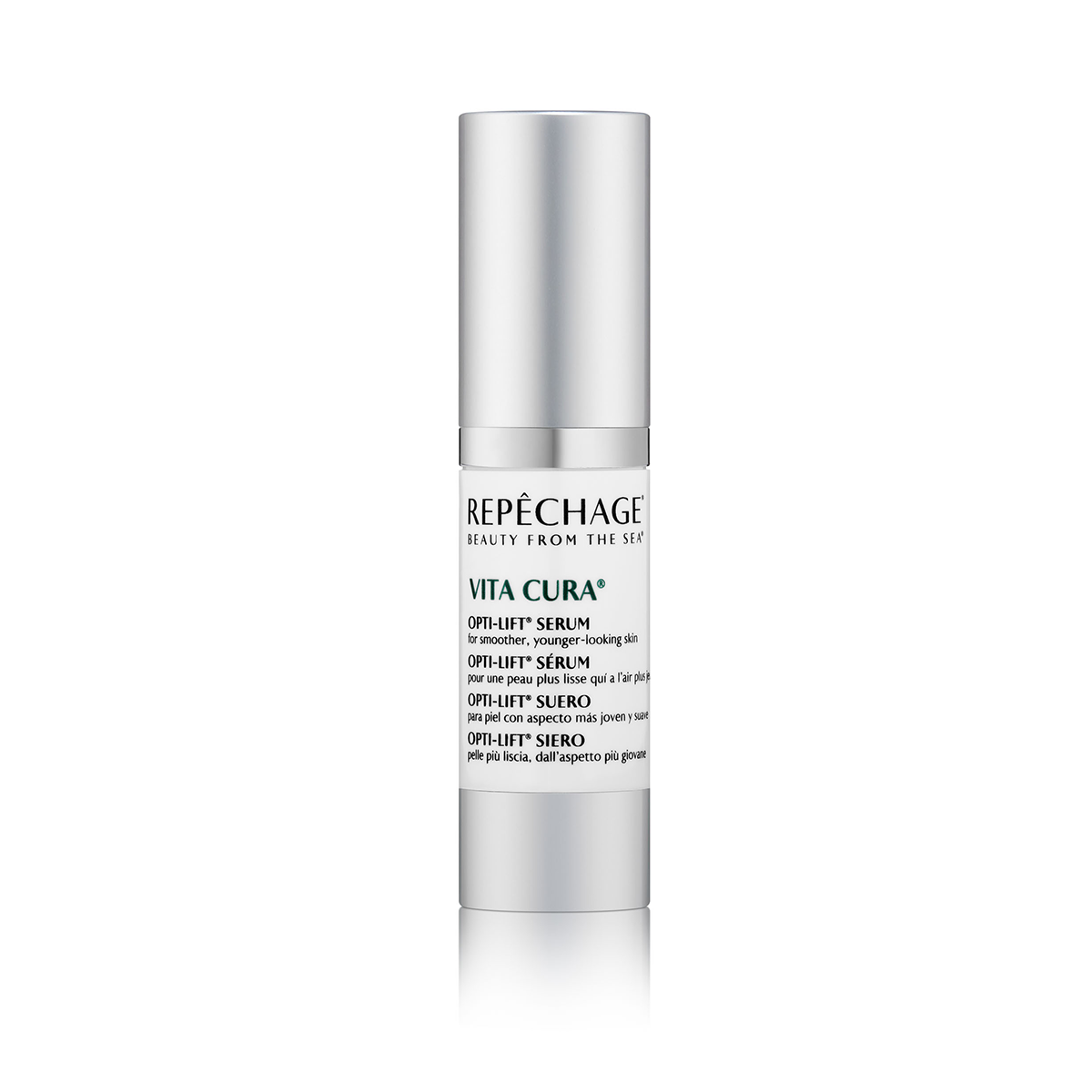 Based on patented technology and advanced science, Repêchage Vita Cura® Opti-Lift Serum utilizes a three-dimensional biopolymer from Pure Almond Protein that creates a net-like structure to instantly "lift" out the appearance of lines and wrinkles for immediate and dramatic results. Hexapeptide-8 helps diminish the appearance of visible crow's feet and other signs of premature aging.